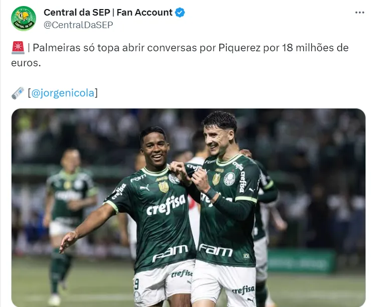 Piquerez tem uma boa idade (25) para atuar no futebol europeu e, por saber se comunicar em espanhol, chama ainda mais atenção dos merengues. Com o Verdão, seu contrato vai até dezembro de 2025.