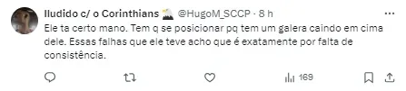 Carlos é reserva imediato de Cássio, e ganhou oportunidade na posição pela ausência do titular, machucado e suspenso desta partida. Ele desabafou e se esquivou das críticas da torcida.