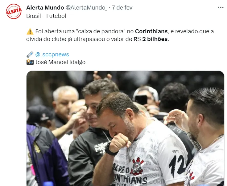 Recentemente, o portal “Time do Povo” revelou que a dívida atual do Corinthians bate na casa de R$ 2 bilhões. Ou seja, o Timão tem uma das maiores dívidas de todo o futebol brasileiro em 2024.
