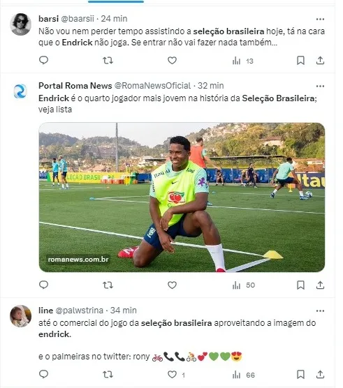 “Com Endrick na seleção, podemos resgatar a identificação que o Brasil perdeu com seus torcedores. Esses jovens podem trazer de volta a empolgação nos jogos da seleção brasileira, porque ainda jogam aqui, e é isso que estamos precisando”, afirmou Casagrande,