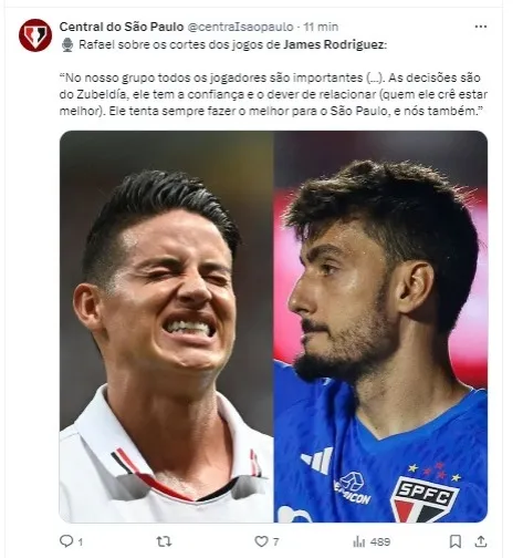 Luis Zubeldía, ciente da situação, deixou James Rodríguez de fora da lista de relacionados para os jogos contra Vitória, pelo Brasileirão, e Cobresal, na Libertadores.