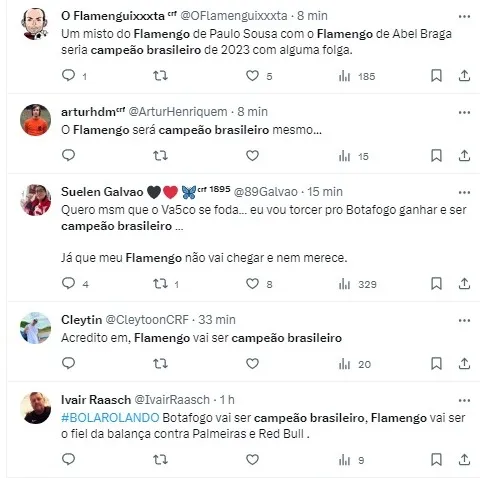 Renato Maurício Prado, mesmo sendo torcedor do Flamengo, concordou com Casagrande. Ele destacou que o Flamengo, apesar de suas chances matemáticas, não apresenta um futebol digno de um campeão. Em sua opinião, a única maneira de o Flamengo se tornar um candidato ao título seria vencendo o Palmeiras e o Red Bull Bragantino.