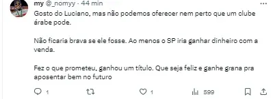 Ainda de acordo com informações do portal, o mercado saudita tem visto o jogador desde a janela do meio da temporada, quando o Al-Nassr estudou a situação de Luciano. Já naquela oportunidade, o jogador toparia deixar o São Paulo apenas com projeto sólido e com um retorno financeiro grande.