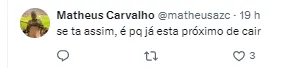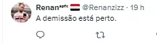 O dirigente publicou uma foto cumprimentando Carpini, que está pressionado, e a torcida “profetizou” que o fim da linha para o treinador está próximo (SIC). Confira algumas publicações dos torcedores abaixo.