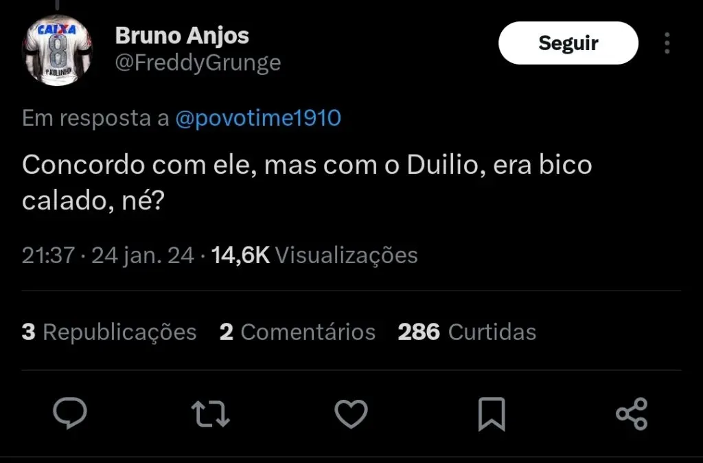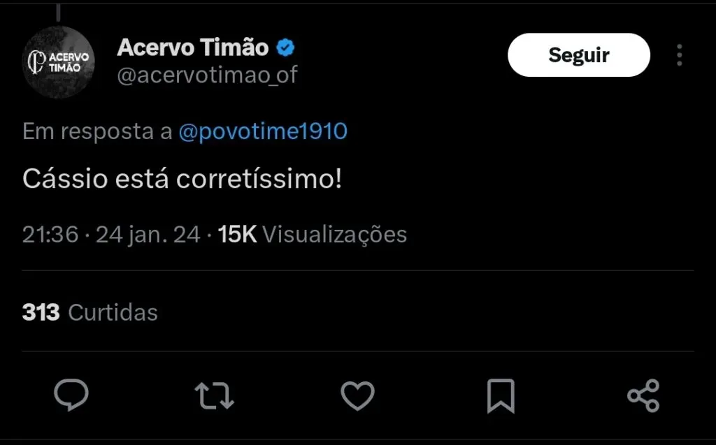 “Entendo que os meninos são importantes, como foram no ano passado. Outros não são tão meninos, como Wesley, Matheus tem jogado. Mas o ano é duro, complicado, jogar no Corinthians não é fácil. Precisa encorpar, não cabe a mim quem vai chegar, a posição, tudo isso é o professor, o Mano está tentando trabalhar, orientar, dar atenção a todo mundo, mas sabemos como é jogar no Corinthians“, completou Cássio.