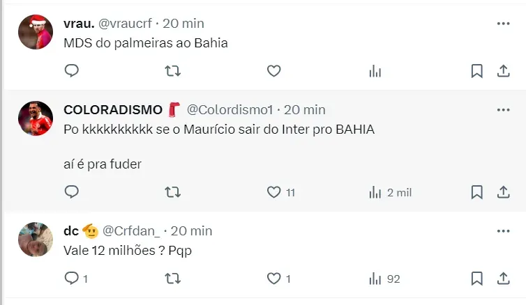 De olho em jogadores como Ferreirinha, do Grêmio, Everton Ribeiro, do Flamengo, e Diego Costa, do São Paulo, o Bahia, segundo informações da ESPN Brasil, surpreendeu todo mundo e fez uma oferta de R$ 64 milhões ao Internacional pelo jogador Maurício, de 22 anos de idade.