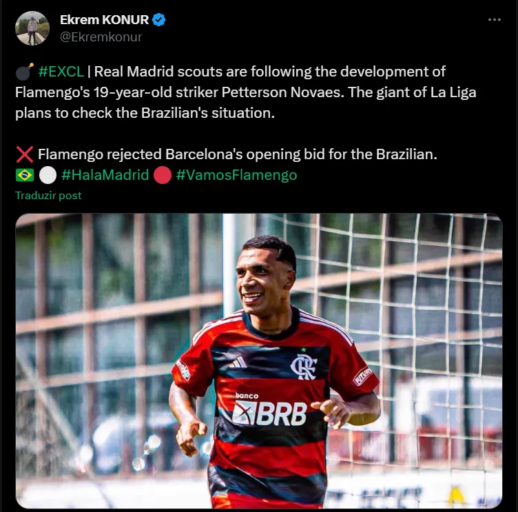 De acordo com as informações publicadas pelo jornalista Ekrem Konur, o Real Madrid está interessado na contratação do atacante Petterson Novaes, de apenas 19 anos de idade.