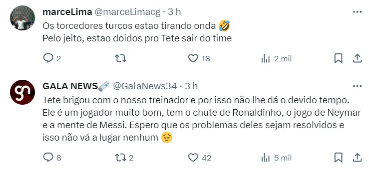 O time de Abel Ferreira apresentou uma oferta de compra definitiva de 8 milhões de euros ao Galatasaray por Tetê, e aguarda resposta. O jogador chegou ao clube turco recentemente, e tem contrato até o ano de 2027.