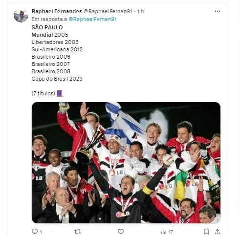 Ele também mencionou o histórico vitorioso do São Paulo na competição, com três títulos conquistados, equiparando-o a equipes de renome como Milan, Barcelona e Liverpool.