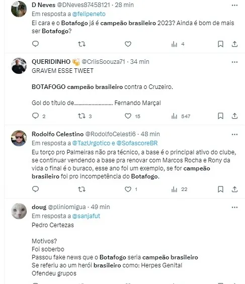 Emerson Sheik, também acredita na possibilidade de título da equipe: “O Botafogo, que fez um primeiro turno excepcional e um segundo turno ruim, ainda está na briga”.