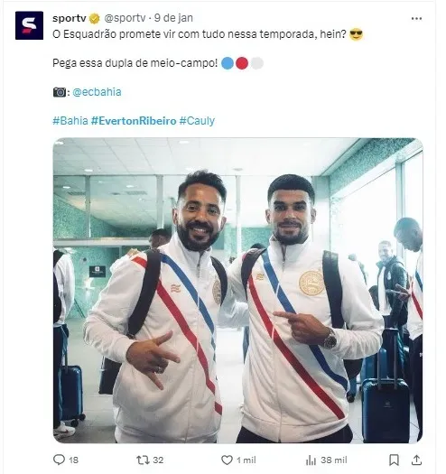 O jornalista esportivo Mauro Beting acrescentou seu ponto de vista: “O Everton Ribeiro vai mudar para melhor, não só ele, mas também vai aumentar o patamar do Bahia, mas ainda sou um pouquinho de De La Cruz”.