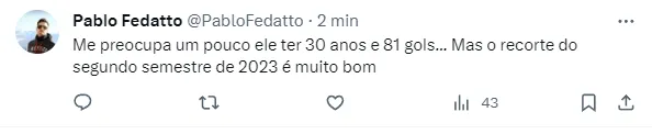 Em 2023, com as cores do Coelho, o jogador de 30 anos somou ótimos números individuais. Foram 21 gols marcados e uma assistência fornecida em 42 jogos disputados.