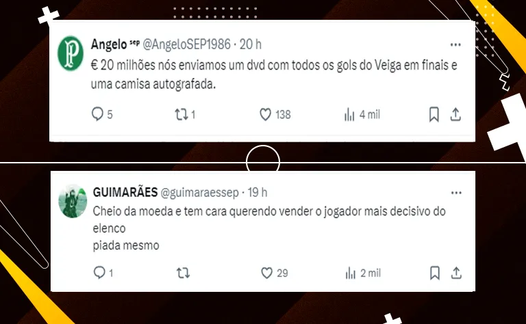 Na atual temporada, com as cores do Verdão, Veiga já soma 36 jogos disputados, com 11 gols marcados e outras sete assistências fornecidas aos companheiros de equipe.