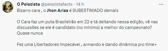 Jhon Arias seria titular absoluto em todos os times do Brasil?
