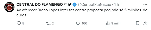 De acordo com a ESPN Brasil, o Verdão estaria disposto a pagar algo em torno de 7 milhões de euros para contar com o jogador. Além disso, o atacante Breno Lopes ainda poderia ser envolvido.