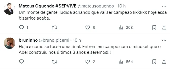 Assim, as emoções do público estão concentradas principalmente para este jogo. Diversos nomes do esporte vêm palpitando sobre como será o duelo e, claro, o desfecho do querido Brasileirão.