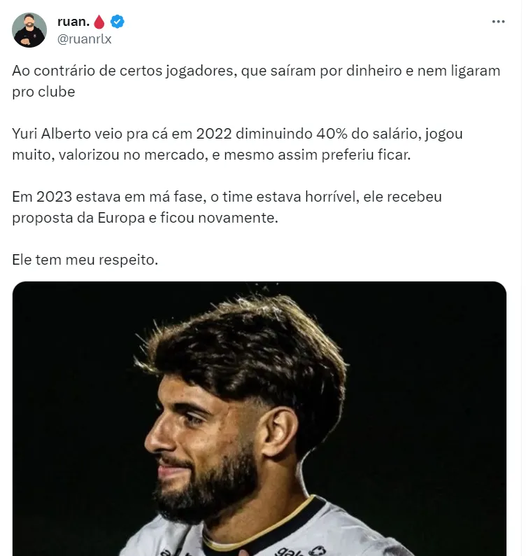 Já Yuri Alberto, chegou ao Corinthians em 2023, junto ao Zenit, por uma grande bolada, o que faz ele receber grandes críticas por parte da torcida e imprensa, uma vez que não consegue render.
