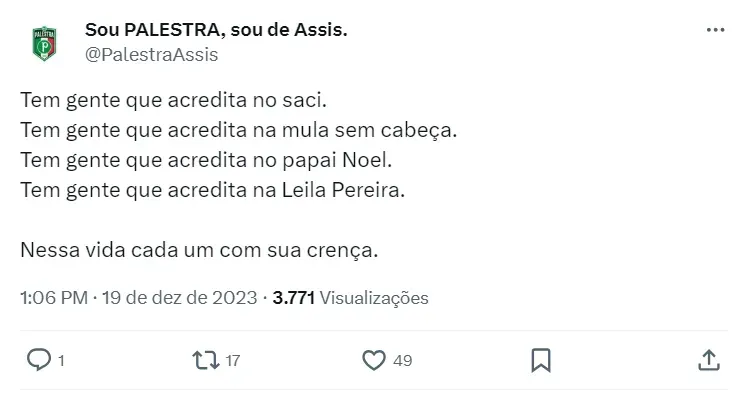 Lembrando que Leila Pereira não é dona, de fato, do Palmeiras, mas encontra-se na lista, pois faz parte de um processo que coloca muita grana dentro do clube paulista.