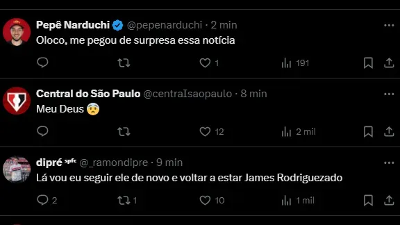 “O meia colombiano poderá jogar o Campeonato Paulista a partir da próxima fase. James pediu pra sair há alguns dias e conversava com outros clubes. Sem avanço nas conversas, repensou sua decisão e opta por ficar no São Paulo“, acrescentou o jornalista.