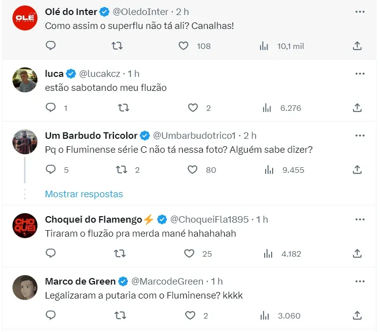 Nas redes sociais, a Conmebol fez uma arte das semifinais da Copa Libertadores e não incluiu o Fluminense na postagem, o que acabou gerando revolta por parte dos torcedores do Flu e, claro, gozações por parte dos rivais, especialmente os estrangeiros. Veja abaixo.