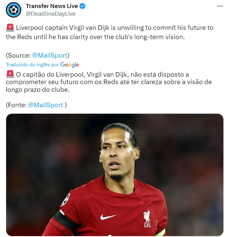 A saída de Klopp dos Reds pode não ser a única no final da temporada, uma vez que o holandês Virgil van Dijk, um dos craques do time e considerado o melhor zagueiro do mundo, não deu certezas de que ficará no clube.