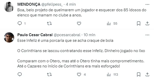 Agora, uma saída começa a ganhar força. Samir Carvalho conta que, internamente, o Corinthians está totalmente insatisfeito com a situação do jogador.