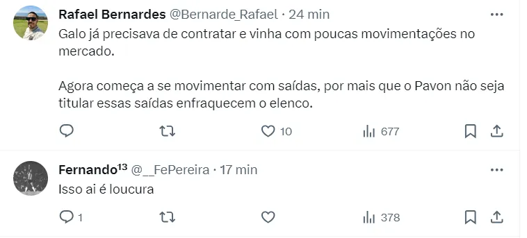 Pavón perdeu espaço no time do Atlético-MG com as novas contratações do clube de Belo Horizonte. Em julho, Bernard é esperado no clube, fato que aumenta ainda mais a concorrência.