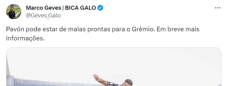 Os moldes do possível acordo entre Grêmio e Atlético-MG envolvendo o nome de Pavón ainda é desconhecido. Como o atleta tem contrato até o ano de 2025, a possível negociação se entende por empréstimo ou compra definitiva em um grande valor.