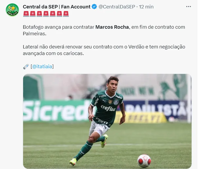 De acordo com a fonte, o Botafogo será o próximo time de Marcos Rocha. A fonte informa que o Glorioso está acertando a contratação do atleta para o ano de 2024, com um contrato de duas temporadas. Rocha tinha o desejo de voltar ao Galo, mas o clube de BH não se mostrou interessado.