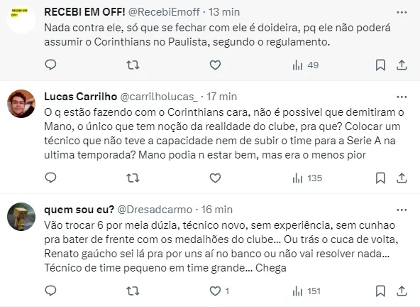 Entretanto, a situação era tão crítica que, ainda assim, Augusto Melo decidiu pelo desligamento do treinador. A informação foi publicada pelo GE na tarde desta segunda-feira (5).