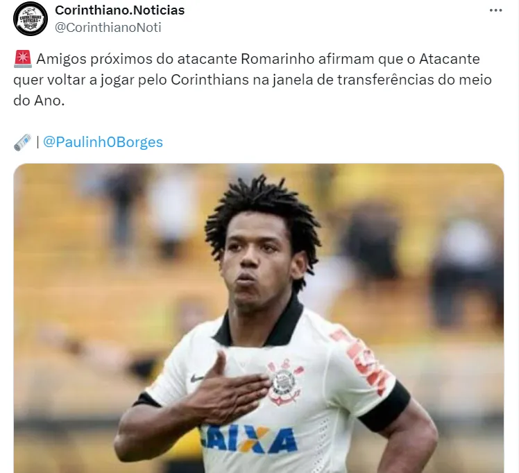 Na frente, há informações de que Romarinho deseja voltar ao Timão. Ele atua no futebol saudita, com as cores do Al-Ittihad. A ideia do atleta era retornar ao Brasil em julho.