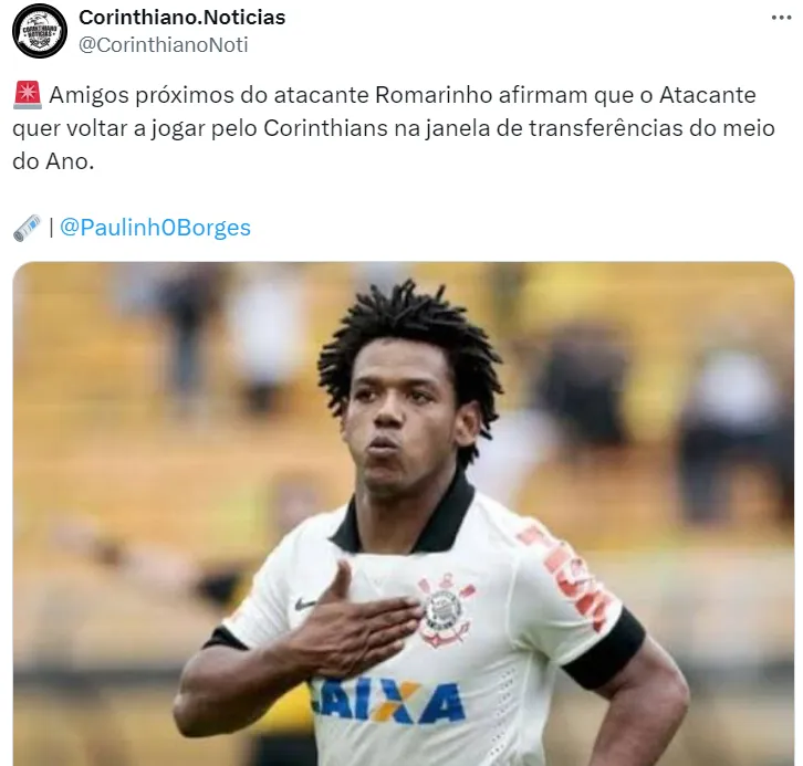 Enquanto isso, Romarinho, ex-jogador do Timão, deseja voltar ao clube paulista e teria data para voltar ao Timão. Atualmente, ele joga no futebol saudita, com as cores do Al Ittihad.