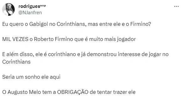 Desta forma, o clube paulista, que também sonha com Talisca, precisará convencer Gabigol, caso queira contar com o futebol do atleta em 2024. Na web, a torcida também está ansiosa com o desfecho desta história.