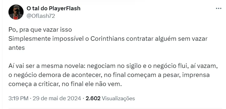 Marcelinho não entra em maiores informações, afirma que o negócio não está fechado, mas frisa que tudo está encaminhado para que Correa jogue no Corinthians a partir da janela de julho do futebol brasileiro.