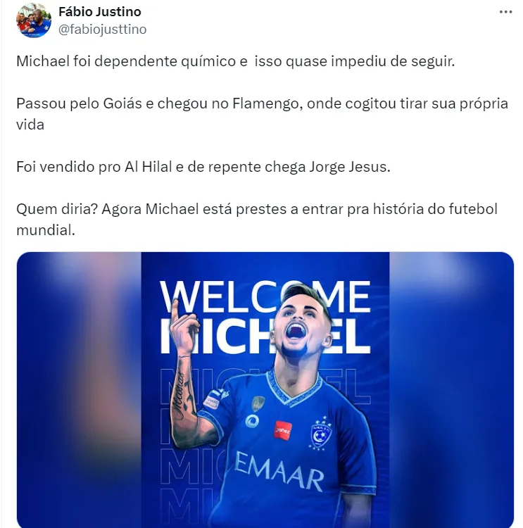 Reforçar o ataque também está nos planos de Augusto Melo, que foca na contratação de um atacante que atue pelos lados de campo, com muita qualidade e, acima de tudo, com capacidade de quebrar linhas, como, por exemplo, Michael, do Al-Hilal, que já foi um alvo recente do clube e encaixa no perfil que Melo busca no mercado. Todavia, não há informações sobre qualquer tipo de negociação neste momento.