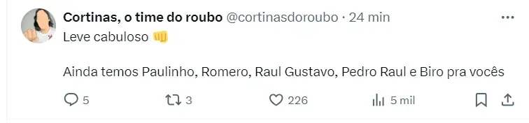 A situação do defensor com o Timão é de um contrato que vai até dezembro de 2024. O lateral faz parte de uma lista de atletas que estão em fim de vínculo, assim como Cássio, possível novo reforço do Cruzeiro.