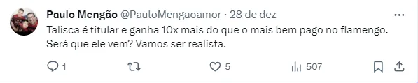 A informação foi repercutida pelo jornalista Fabrício Lopes em um de seus canais do YouTube. Poderia ser, por exemplo, um possível substituto para Éverton Ribeiro visando o futuro.