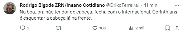 Isso porque, de acordo com o jornalista Lucas Collar, o Timão está tentando atravessar, de última hora, as negociações do Internacional pelo meio-campista Thiago Maia.
