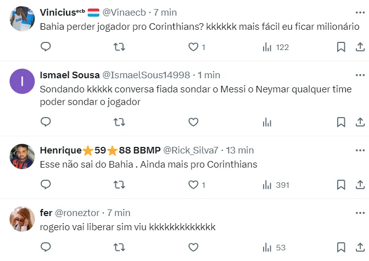 O clube paulista monitora a situação de Rezende desde o ano passado. Nenhuma oferta ainda chegou ao Bahia, mas as chances disso acontecer são grandes, já que uma primeira sondagem já aconteceu.
