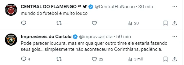 Na atual temporada, o atleta ainda não balançou as redes e vem sendo um dos nomes mais criticados pela Fiel nesta ‘crise’ vivida pelo Corinthians, que soma três derrotas seguidas.