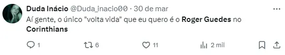 Você gostaria de ver Roger Guedes de volta ao Corinthians?