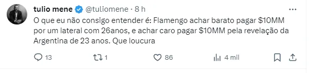 Isso porque, de acordo com Julio Miguel Neto, o Flamengo voltou a manifestar interesse no argentino Benjamín Rollheiser, uma das sensações do futebol sul-americano.