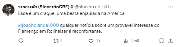 A fonte ainda conta que, apesar da prioridade do atleta ser o futebol europeu – onde ainda não houve avanços, Rollheiser vê com bons olhos uma transferência ao Flamengo.