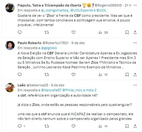 “A CBF não tinha que ter eleição, que vai ser tudo igual. Deveria ser o Zico. Ele ia formar uma chapa incrível para tomar conta do futebol. Se ele faz isso há tantos anos, se ele é o cara com mais credibilidade no futebol, nunca saiu isso do Zico, deveria ser ele o presidente da CBF”, afirmou Neto.