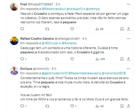 “Vocês venderam o Cruzeiro, uma marca tão forte, para ficar um time pequeno de jogadores medíocres, cada um fale o que quiser”, acrescentou o ex-jogador.