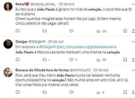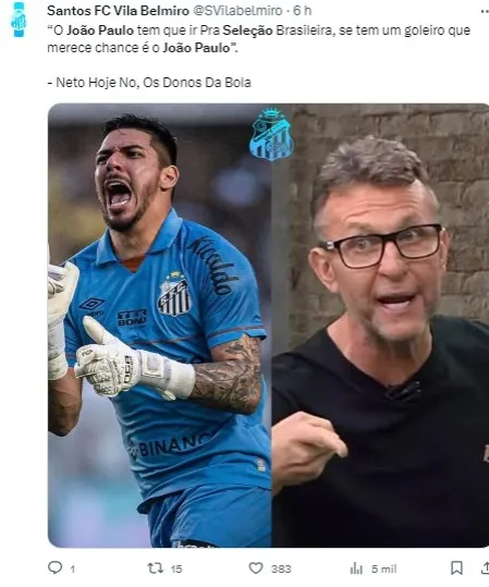 Para Neto, o goleiro João Paulo, do Santos, deveria ser titular na equipe nacional. Para o ídolo do Corinthians, o jogador de 28 anos possui um potencial significativo que poderia permitir que ele conquistasse a posição de titular, superando nomes amplamente reconhecidos, como Alisson, Ederson e Weverton.