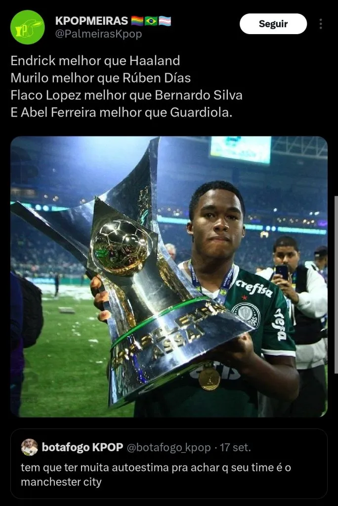 “Como é que pode, no ‘país do futebol’, você não ter o Abel Ferreira como treinador da seleção brasileira? Tudo que ele fez em três anos, ele já conhece tudo do Brasil… O conhecimento que esse cara tem é impressionante. Ele é jovem, tem só 44 anos, ele pode disputar duas Copas do Mundo pra nós“, disse o apresentador.