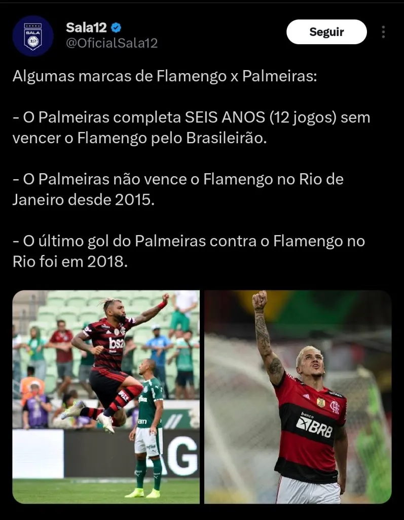 “Foi um amasso do Flamengo sobre o Palmeiras e mostra o que eu penso do ano que vem. O Flamengo tem R$ 300 milhões para investir em jogadores. De R$ 300 a 400 milhões. Meu irmão, esquece. No ano que vem esquece Corinthians, Grêmio, Internacional, Fluminense…é Flamengo e Palmeiras. Isso se o Palmeiras reforçar o seu time, porque com um elenco tão reduzido tem dificuldades. É um fiasco o Palmeiras ganhar Paulista e Supercopa”, disse Craque Neto.