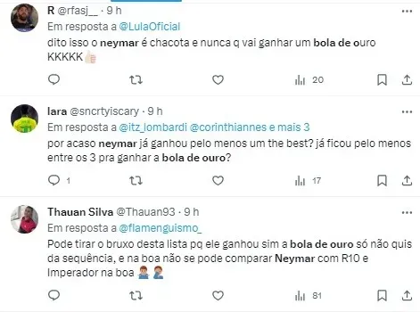 Neto citou os três próximos candidatos ao prêmio deixando de lado nomes como Vinicius Junior e Neymar.