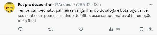 “O Palmeiras que tem três anos de Abel Ferreira. O Abel Ferreira, se ganhar o jogo quarta-feira, eu acho que dificilmente o Palmeiras perde o título pro Botafogo.”